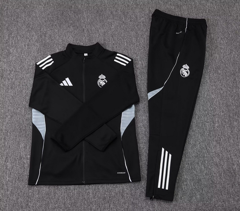 25-26 Real Madrid Black Football Tracksuits Long Jacket Suits
