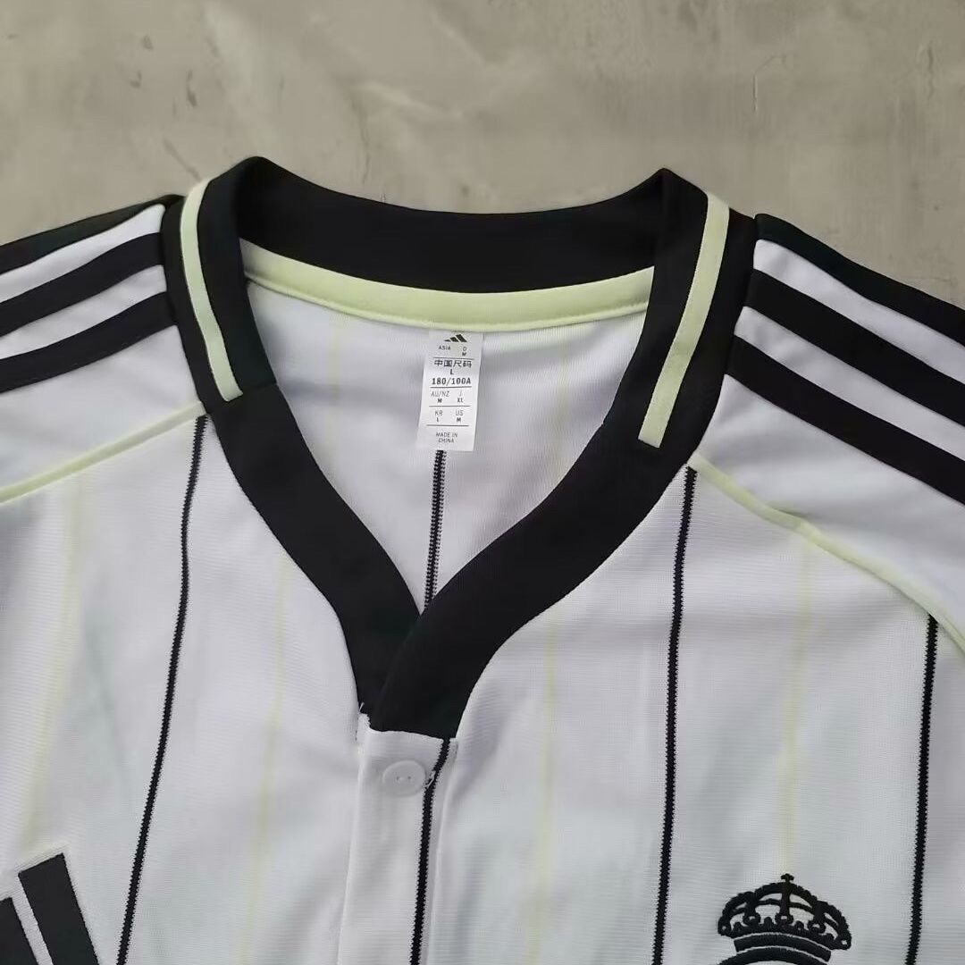 Real Madrid 2025-26 casual white striped short sleeved shirt